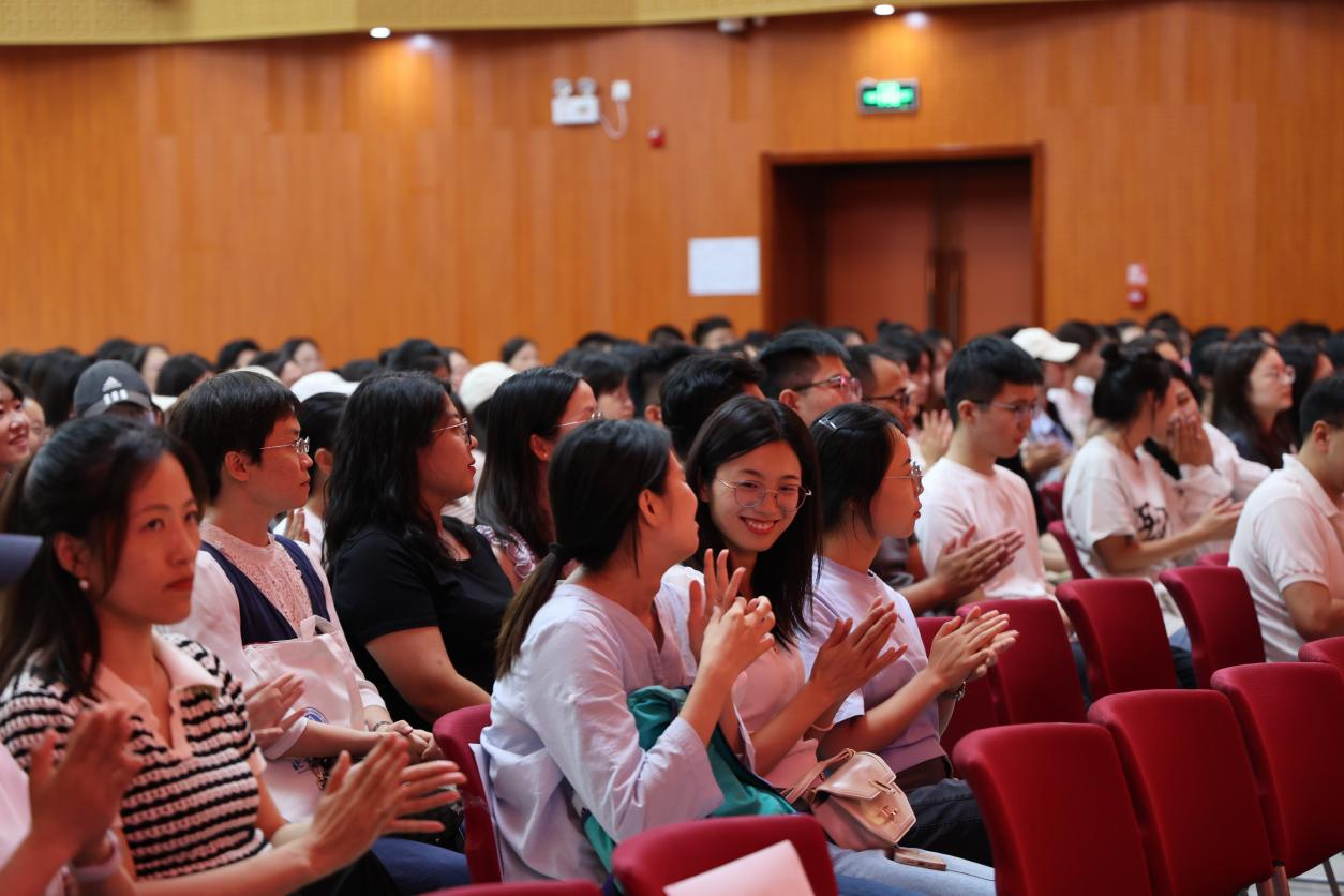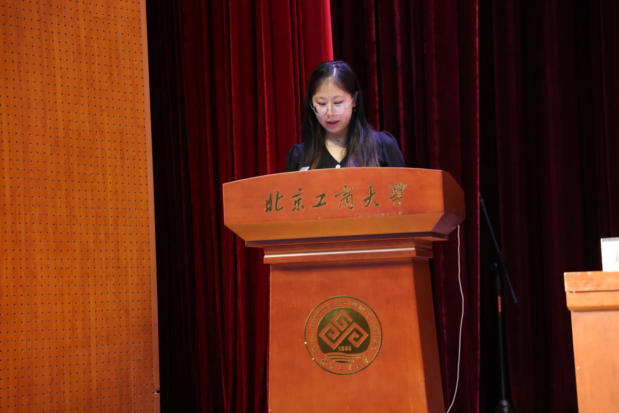 老生代表、台湾女优 研究生党建工作室负责人、商研2232班潘珊同学与新生代表23级会计学的冀雨晴同学,分别上台发言,向新同学表达了美好祝愿。