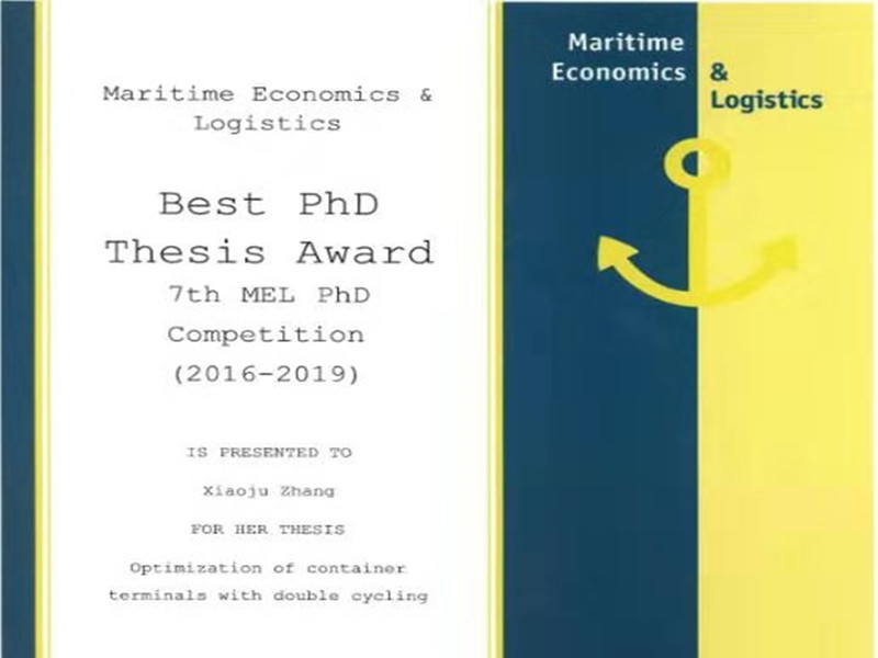 物流管理系教师张笑菊撰写的博士论文《集装箱码头同贝同步作业系统优化》获得了第七届MEL最佳博士论文奖,是目前为止获得此荣誉的唯一一个国内院校学者。论文针对集装箱码头同贝同步装卸作业调度中的相关问题进行了研究,不仅从理论上优化了码头同贝同步装卸作业中资源配置、码头布局等问题,得到的相关结果为码头实施同贝同步装卸作业技术提供了指导建议。MEL主编Hercules E. Haralambides教授对最佳博士论文获得者颁奖并致辞,他首先表示对张笑菊博士获得此荣誉的祝贺,并希望她在未来的研究中取得更丰硕的成果。