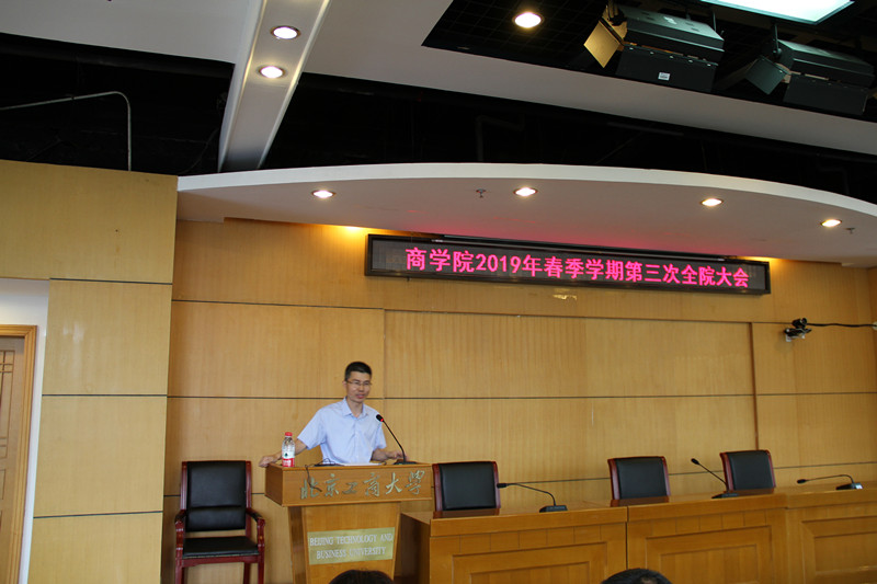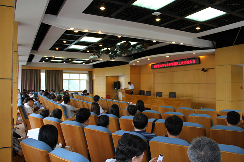 在综合楼三层报告厅召开2019年春季学期第三次全院大会,会议由院长毛新述主持。