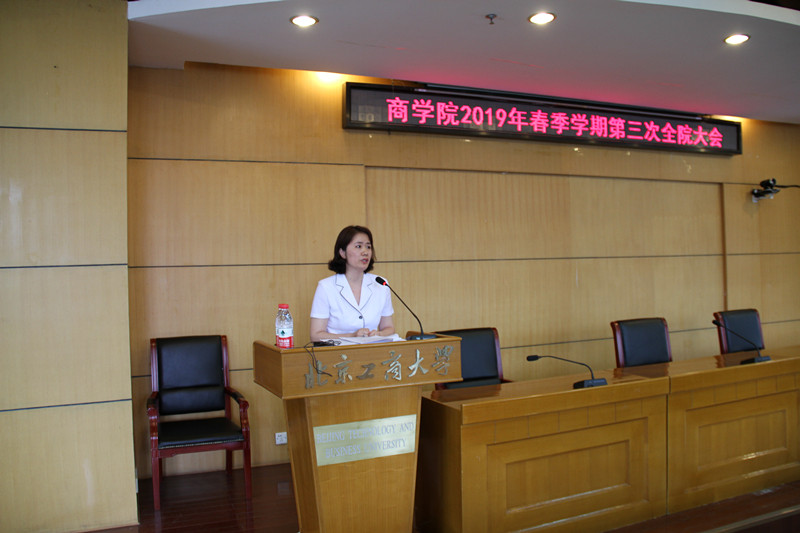 班子和系主任队伍建设,建设一支善于谋划、勇于担当的干部队伍;四是着力打造商院特色文化,凝聚共识,凝聚人心;五是扎实做好党支部建设工作,加强支部的规范化建设,增强支部的生机活力。她还对暑期的安全稳定、学生工作、以及下学期的工会活动等进行了安排和布置,希望大家圆满完成本学期的工作,并祝大家假期愉快。