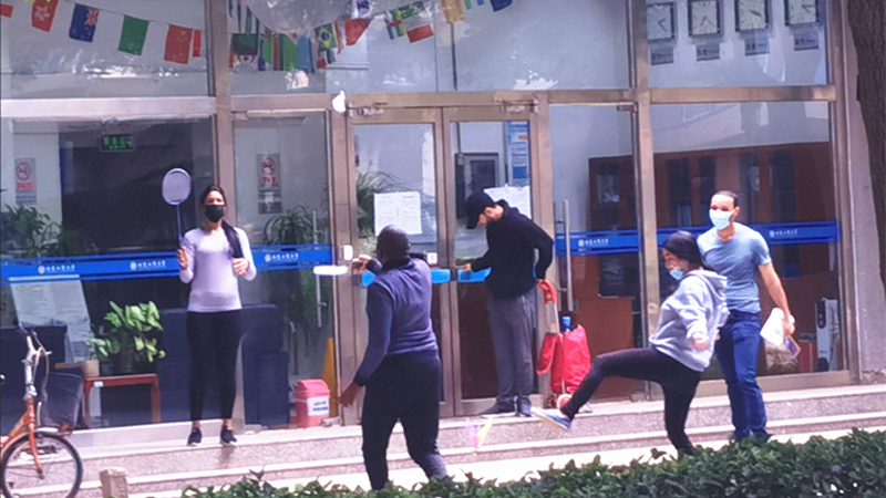 专程送去羽毛球拍、毽子、跳绳等运动器材,并组织线上运动比赛,让同学们在校园内一样可以健身锻炼。
