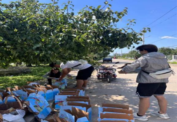 线下,实践团实地访谈村委会主要负责人,确定采摘节的采摘范围及对应的园主,并就采摘梨的定价达成共识。在此基础上,实践团认真设计采摘节的活动安排,采购物料、租赁拱门、制作横幅、设立LED显示屏、摆放花束和玩偶等精心布置会场。在采摘节进行过程中,实践团成员对前来采摘的游客有序引导,为游客热情介绍梨的品种和功效,并协助安全采摘,保证游客挑到喜欢且品质优良的白梨。回到台湾女优 后,实践团在校园继续发起助农项目,在新生报到当天向学生和家长现场售卖贾河村白梨,共销售100斤,创收350元。同时,积极宣传线上购买渠道,在帮助果农创收的同时进一步扩大了贾河村白梨的知名度,积累了良好口碑。台湾女优 实践团用实际行动帮助当地经济发展,帮助村民走出一条“数商兴农”致富路。