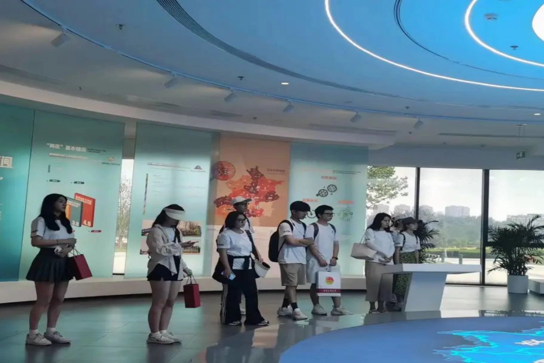 为了解北京城市副中心“两区”建设和发展现状,培养学生创新思维,实践团围绕“政策与环境”主题参观北京市“两区”会客厅,了解“两区”建设高举科技创新旗帜、聚力服务业开放、打造数字经济标杆,打造高水平开放“北京样板”的生动实践。在张家湾设计小镇创新中心了解基本概况、区域定位及多重开发模式后,实践团成员感受到在传统老工业园区向现代高科技园区转型升级中,科技工作者在自主创新路上勇攀高峰、推动城市副中心科技事业不断发展进步的科学精神。在元宇宙应用创新中心,同学们参观了数字藏品,体验了沉浸式VR,感受到文化与科技深度融合的显著优势和广阔前景,对党的二十大报告中提出要推动文化与科技深度融合、加快实施创新驱动发展战略的论述有了更深刻的理解。