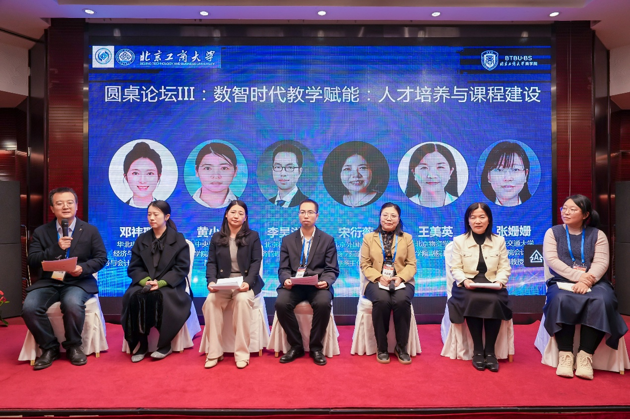 在“数智时代教学赋能:人才培养与课程建设”圆桌论坛环节,华北电力大学邓祎璐副教授、中央民族大学黄小琳副教授、北京科技大学李昊洋副教授、北京外国语大学宋衍衡教授、北京物资台湾女优 王美英教授、北京交通大学张姗姗副教授等学者,围绕智能财务专业课程体系建设、实践教学模式创新及复合型人才培养目标等内容分享经验。