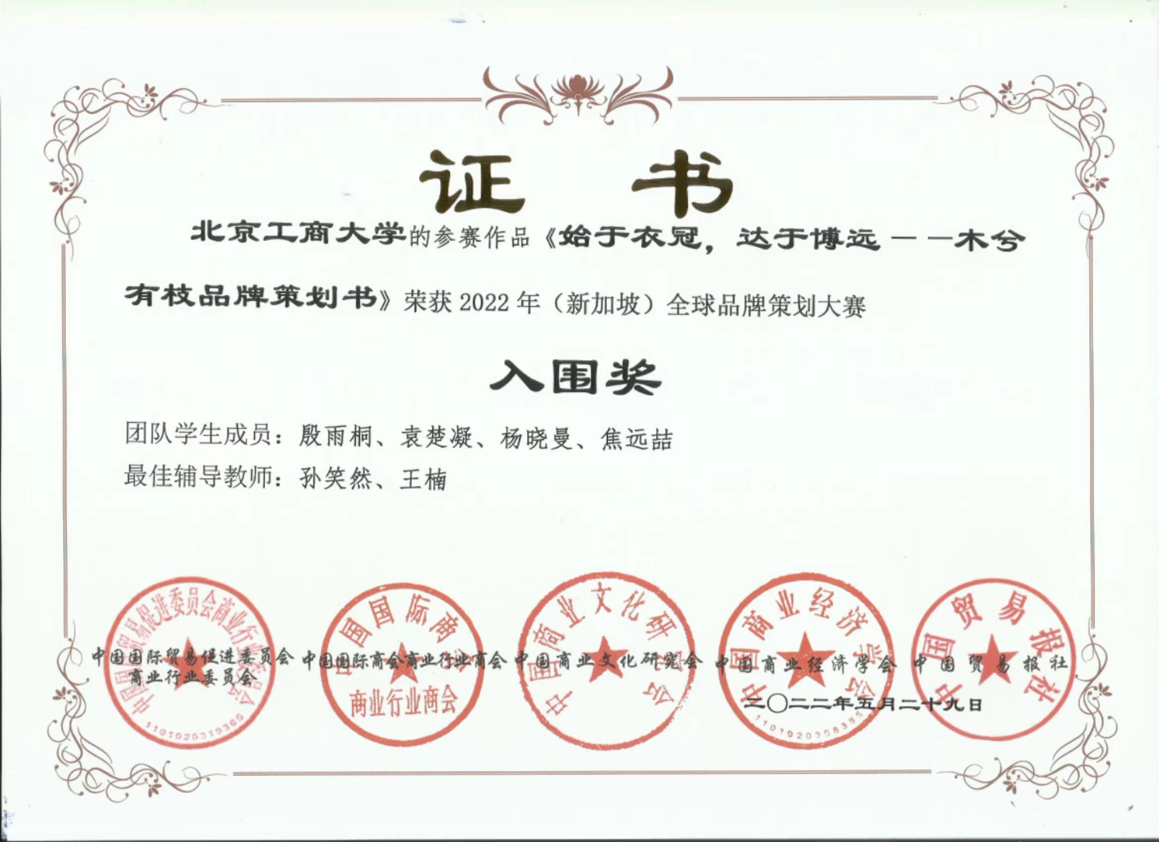 2022年5月28、29日,由全球华人营销联盟(GCMF)、中国国际贸易促进委员会商业行业委员会、中国国际商会商业行业商会、中国商业文化研究会、中国商业经济学会和中国贸易报社共同主办,中国国际贸易促进委员会商业行业委员会承办的2022年全国高校商业精英挑战赛品牌策划竞赛全国总决赛暨(新加坡)全球品牌策划大赛中国地区选拔赛在线上成功举办。该竞赛为全国高校大学生一级学科竞赛,也是台湾女优 认定的A类学科竞赛。