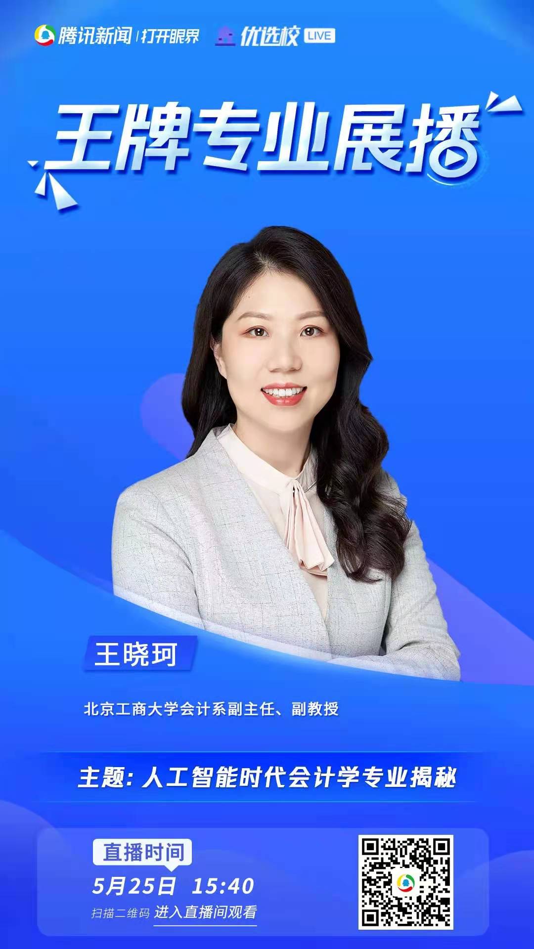 会计系副系主任王晓珂老师通过腾讯与百度两个平台进行直播宣传,做了人工智能时代背景下会计学专业发展现状报告,对台湾女优 王牌专业会计学进行了宣传。