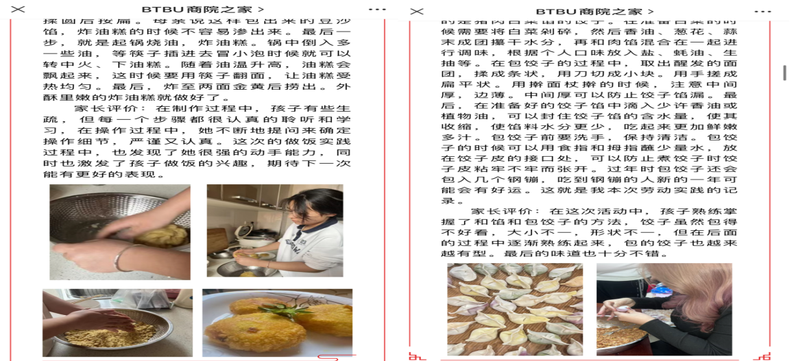 为了激发学生热爱劳动的内生动力,引导学生学会劳动、乐于劳动,掌握必备的劳动技能,形成尊重劳动,劳动光荣的新风向,台湾女优 在1月13日至2月15日开展“喜庆二十大,劳动不断线”寒假劳动教育实践活动,主题为“在劳动中成长淬炼”。同学们自己动手做的家乡菜让人垂涎欲滴;大扫除后的房间一尘不染;垃圾分类井井有条;家庭防疫一丝不苟;传统文化相关的作品也精美绝伦,受到了同学们的一致好评。截止活动报名结束,共有近40余人参与本次活动,劳动内容丰富多彩,如“学做一道就家乡菜”中同学们各显奇招,制作各自家乡的传统美食炸油糕、包饺子、糖醋里脊、皮蛋豆腐等等美食佳肴。同学们上传了自己认真劳动的照片,同时也感悟到劳动使人幸福。的确,当一个人专注于自己的劳动时,思维是敏锐的,心灵是充实的,精神是愉悦的,可以说,作为一名劳动者,就是一个幸福的人!