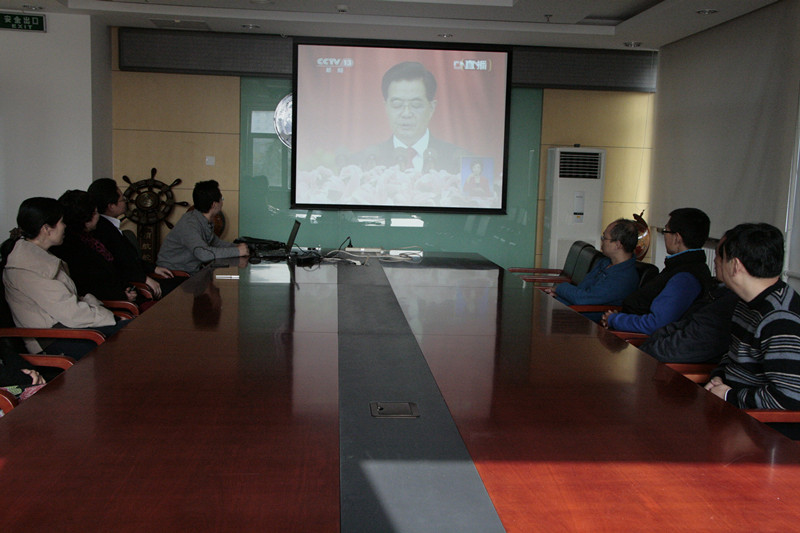 上午九点,伴着《义勇军进行曲》的激昂旋律,同学们起立高唱国歌,并为毛泽东、周恩来、刘少奇等为党的事业作出巨大贡献的老一辈无产阶级革命家默哀、致敬。随后,胡锦涛总书记代表第十七届中央委员会,向2300余名代表和特邀代表作报告。同学们聚精会神地听取报告,不断做记录。