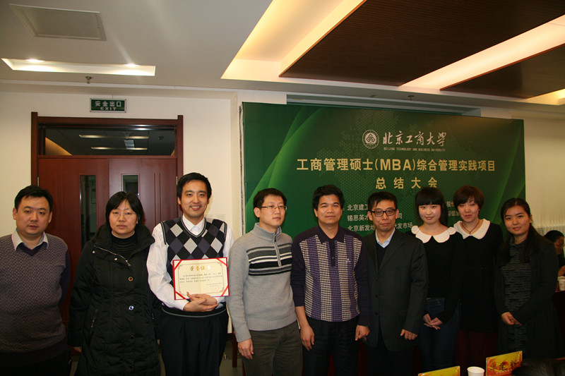 各实践小组进行了项目成果的分组汇报,就项目背景及必要性、市场分析、体系构建、实施方案、未来展望等几方面阐述了他们的观点。企业的相关领导分别听取了成果汇报,并对实践报告中的问题进行了提问,对项目成果进行了讨论,给出了鉴定意见。北汽福田实践小组针对北汽福田公司员工的荣誉体系,提出了“钻轮”终生荣誉奖、“金轮”最高奉献奖、“安轮” 总裁激励奖,得到了该公司的认可。北京建工集团的领导就管理模式、商业模式、外部市场等与同学们展开了热烈讨论。MBA校友企业基镇源公司总经理王伟,认为同学们的报告贴近企业的实际情况,对企业的定位、营销策略都提供了一定的指导意义。