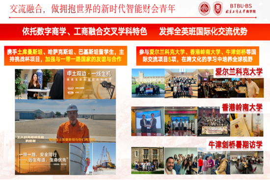 积极参与中外学生跨文化交流研讨,携手土库曼斯坦、哈萨克斯坦留学生参加挑战杯一带一路专项赛,与中石油土库曼斯坦分公司达成合作。前往爱尔兰、香港、牛津剑桥交换学习,在跨文化的学习体验中,培养全球视野和国际竞争力。在文体舞台上竞展活力,获国家级、北京市级文体类奖项26人次,展现新时代大学生风采。