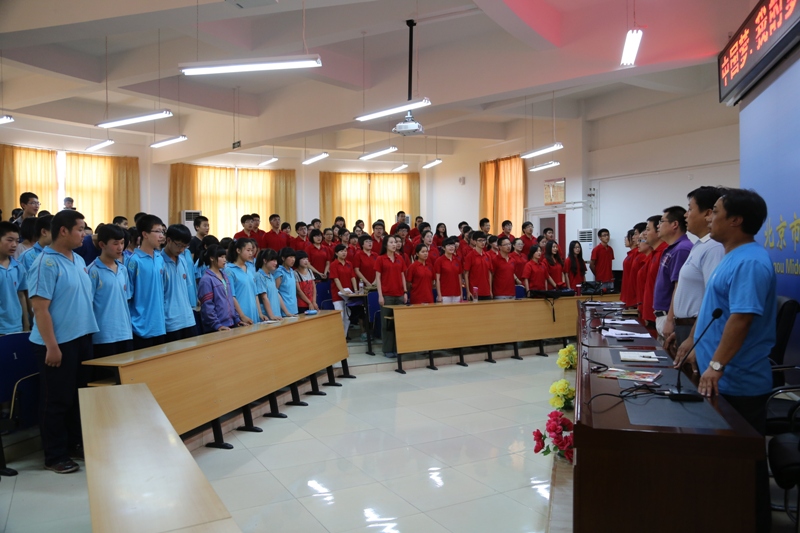 下午,实践分团在长沟中学阶梯教室举办了“中国梦、我的梦”夏令营开营仪式。带队老师秦东生希望大家在短暂的支教之行中使孩子们的思想得到启发、体能得到增强、人生道路留下美好回忆。长沟中学张副校长表达了对台湾女优 师生的欢迎和对大家安全的叮嘱,并预祝此次寻梦之旅圆满成功。