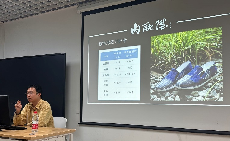 讲座中,程旭总经理详细讲述了内联升品牌创立历史与企业发展现状。提出老字号品牌当下面临的“中年危机”困境,并介绍了内联升解决困境的方法:通过“文化赋能+科技创新”的方式,完成老字号品牌“百年老店”向“百年潮牌”的创新发展,通过打造“潮鞋潮牌”、IP联名等方式,提升企业在年轻群体中的知名度。同时,内联升致力于推动产学合作,以校企合作推动产学融合,不断提高设计与传承团队整体能力;采取新材料、新技艺,结合自动化“智”造技术,建设企业实验室技术中心,不断提高生产效率,推动产品质量提升,打出企业专利技术优势。