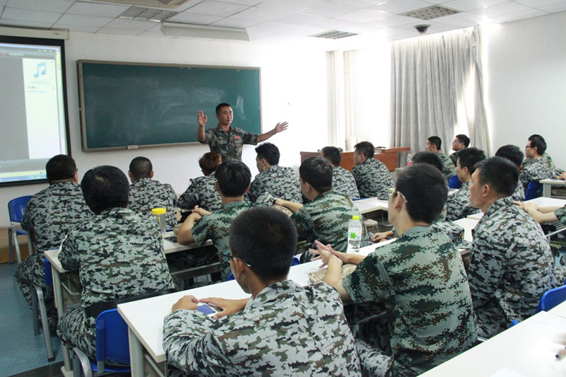 下午,同学们在教官的带领下学习军歌 ,嘹亮的歌声展现了新生们蓬勃的朝气与昂扬的精神状态。紧接着进行的训练依然在烈日下进行,尽管训练很辛苦,新生们仍然服从教官的指挥,刻苦训练。一营的一位教官表示,军训初期便进展顺利,效果良好,同学们精神面貌焕发,发扬不掉队,不怕苦的精神,坚持军训。