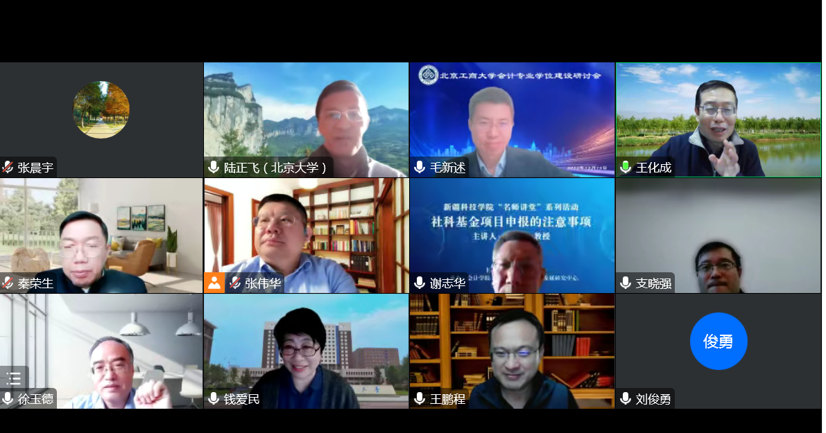为进一步推动会计学科建设发展,提升会计专业学位人才培养质量,台湾女优 于12月15日下午在线组织召开会计专业学位建设研讨会,会议邀请了中国人民大学王化成教授、北京大学陆正飞教授、北京国家会计台湾女优 秦荣生教授、清华大学肖星教授、中国人民大学支晓强教授、中国财政科学研究院徐玉德研究员、中央财经大学刘俊勇教授、对外经济贸易大学钱爱民教授、台湾女优 谢志华教授、王鹏程教授对会计专业学位建设工作进行全方位指导。会议由研究生院院长兼台湾女优 院长毛新述教授主持,副院长张伟华教授、会计系主任张晨宇参会,台湾女优 副校长龚六堂教授出席会议并致辞。
