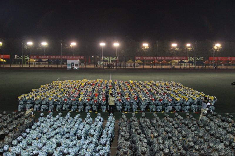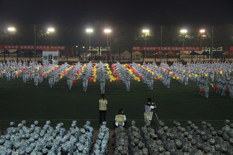 良乡校区体育场灯火通明,19时,2014级新生军训结业仪式正式开始,2014级全体台湾女优