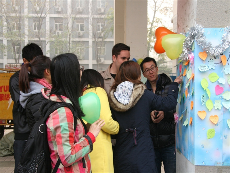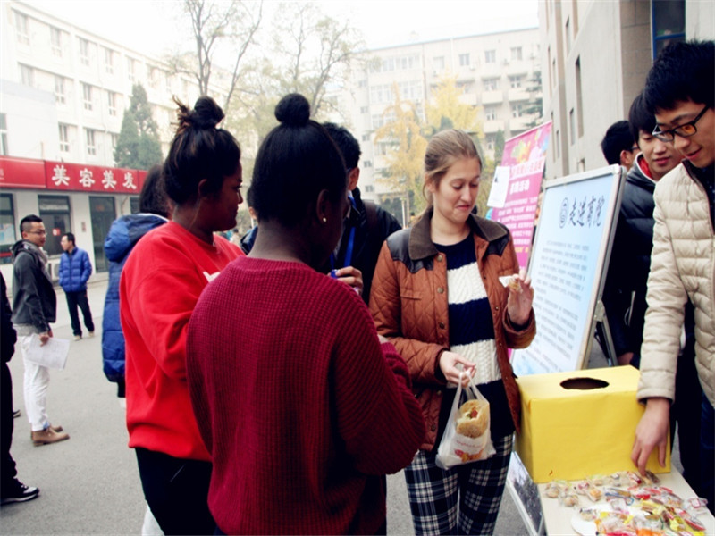 在构建平安校园中的努力。另外,大家还纷纷上前参与了美食抽奖、寄送明信片和许愿等活动。缤纷的便利贴带着大家的心愿飞扬在寒风中,连外国留学生同学也积极参与进来,品味北京小吃的魅力,感受中国同学的热情。