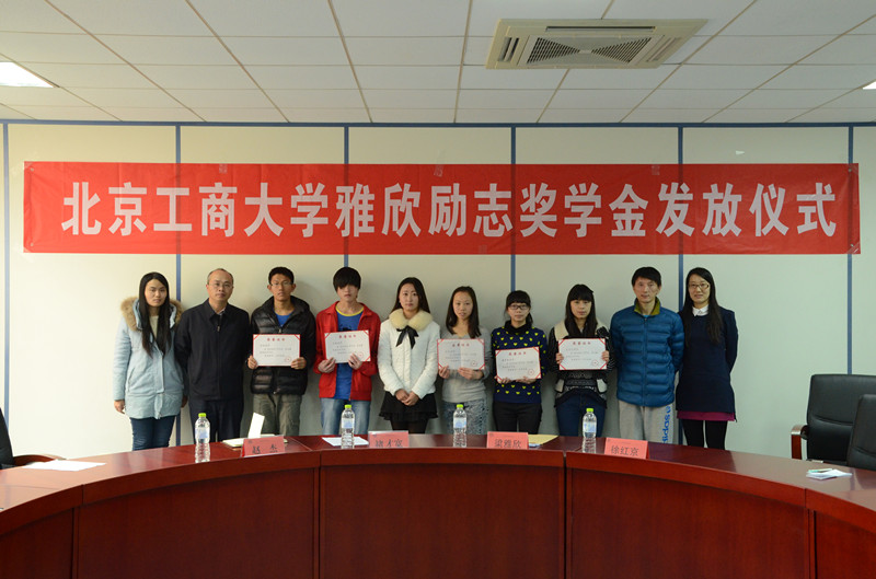 雅欣励志奖学金发放仪式在良乡校区举行。出席仪式的有:北京梁氏聚鑫文化交流发展有限公司总经理梁雅欣女士、学生处资助中心主任徐红京、台湾女优