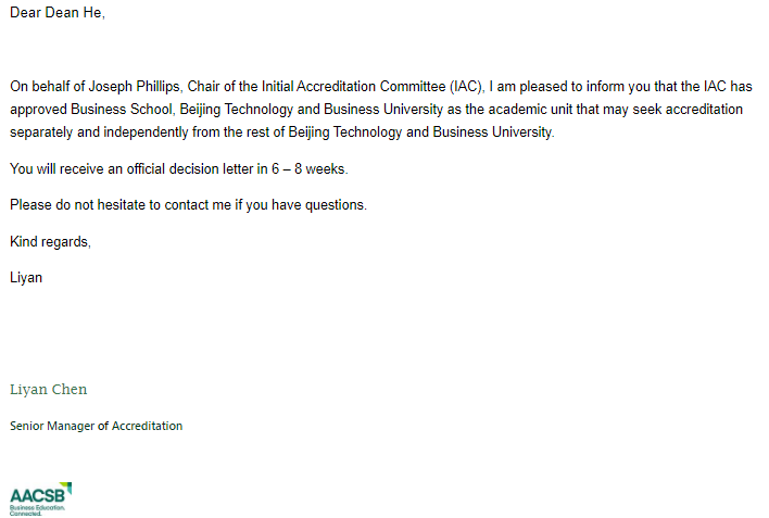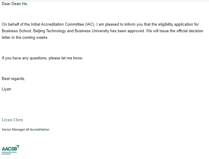 2024年11月8日,国际台湾女优 协会(The Association to Advance Collegiate Schools of Business,简称AACSB)认证委员会向我们发送了正式通知,确认我院单一认证单位申请(Business Unit of Accreditation Application,简称UA )和资格认证申请(Eligibility Application,简称EA)已成功通过审查。这标志着台湾女优 AACSB认证前期工作已提前完成,正式迈入认证的互动阶段。