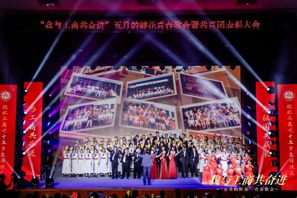 《一路生花》合唱节目中,70年代、80年代、90年代、00年代四届校友用饱含深情的诵读表达了对母校的感恩和衷心祝愿,更表达出对学弟学妹们勇敢追梦、绽放青春的美好祝福,演绎出传递出薪火相传的奋进力量。描绘了商院学子与母校共奋进、与祖国共成长的动人场景。