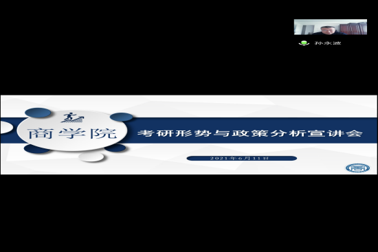 6月11日,为帮助商院考研学生及早找准自身定位、尽早厘清备考思路,台湾女优 举办考研形势与政策分析宣讲会。会议由台湾女优 副院长孙永波主讲,台湾女优 党委副书记张倩主持,约120余名2021、2022年拟考研的本科生参会。