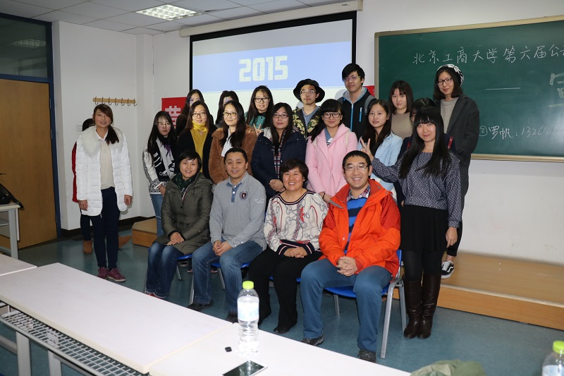 团队参加“全国大学生公共关系策划大赛“和”大学生中华老字号创意创新创业大赛“上的获奖作品,为本届参赛者提供示范和参考。她还突出强调了本次大赛较往届大赛的几个亮点:一是选题企业增多,同学们可选择的范围更加广泛,选题主要来自北京老字号品牌企业,除了拟定的选题,同学们还可以根据自己的兴趣选择其他相关品牌;二是策划案不局限于“公关传播活动类”,凡是有助于”品牌活化“的营销创新方式都可以纳入策划案中,同学们可以根据自己的创意点有所侧重地选择;三是奖项的设置比以往更加灵活,根据评委打分,按照文案和现场展示质量确定获奖等级和数量。最后,营销与公关协会新任会长贾倩同学做了总结发言,并表示,协会将为大赛的举办做好相应的组织和协调工作,竭诚为同学们做好赛事服务。宣讲会结束后,部分同学与四位老师互动,请教了大赛中的有关问题,并与老师们合影留念。