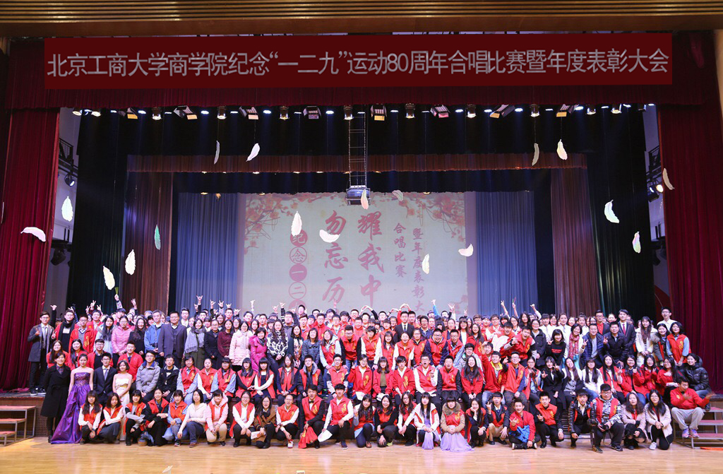 大会举办纪念“一二•九”运动合唱比赛,共分为耀党之辉、壮国之威、扬族之美三个篇章,2015级新生15个班级轮番登场,既有《闪闪的红星》、《没有共产党就没有新中国》、《东方红》等红色经典,也有《歌唱祖国》、《国家》、《爱我中华》等时代旋律,通过同学们生动的演绎,展现出华夏青年为实现人民当家作主、实现中华民族伟大复兴所走过的峥嵘岁月和留下的光辉印记。各班以嘹亮的歌声、整齐的动作、精心的编排将商院学子的风采展现的淋漓尽致。新生班主任也参与到合唱队伍中,他们穿上红军装与同学们一起引吭高歌。经过激烈的角逐,最终评选出最佳创意奖、最佳组织奖、最佳风貌奖等奖项,工商管理类151班获得比赛一等奖,财务管理151及注会151班获得二等奖,工商管理156、工商管理154及工商管理152班获得三等奖。