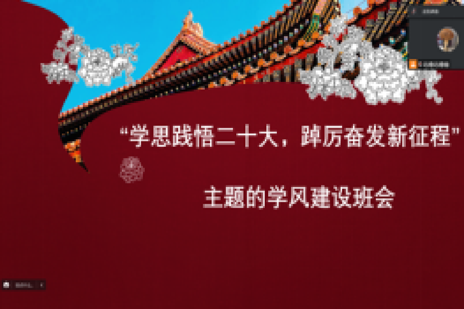 50个本科生班级组织举行了以“学思践悟二十大,踔厉奋发新征程”为主题的学风建设班会。班会上,班主任带领班级学生以学习党的二十大精神为契机,领读领学二十大报告中对青年的寄语和期望,带领班级学生对学业成绩进行分析总结,对班团建设进行梳理复盘,引导学生加强对未来的规划。