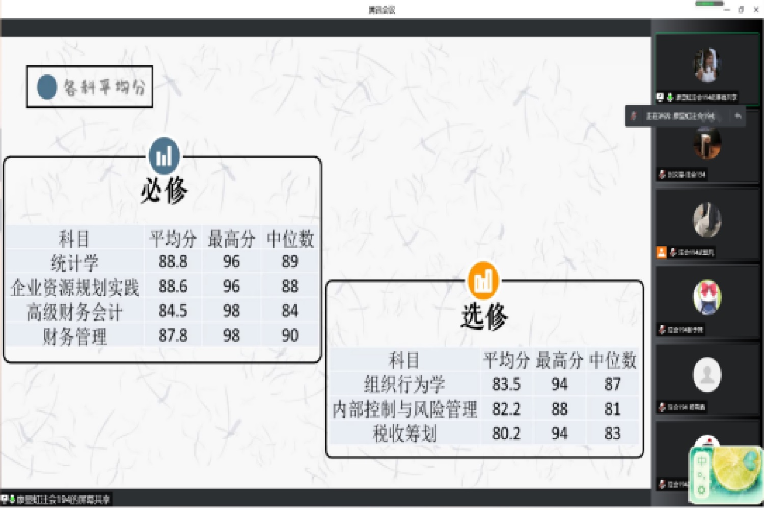 2019级各班利用主题班会对学习现状进行了分析,通过学业数据的对比分析,指出同学们的优势和不足,通过制表绘图等多种形式让同学们直观地了解到学业情况。不少班级还邀请了学习优秀的同学传授学习经验,同学们互帮互助,发现困难,解决问题,进一步改进班风学风;班主任结合学习情况和未来发展方向对学生提出期望与建议,希望同学们在线上学习期间能够保证效率,自律自强,注重加强锻炼提高身体素质,在大三学年天规划、做好准备。