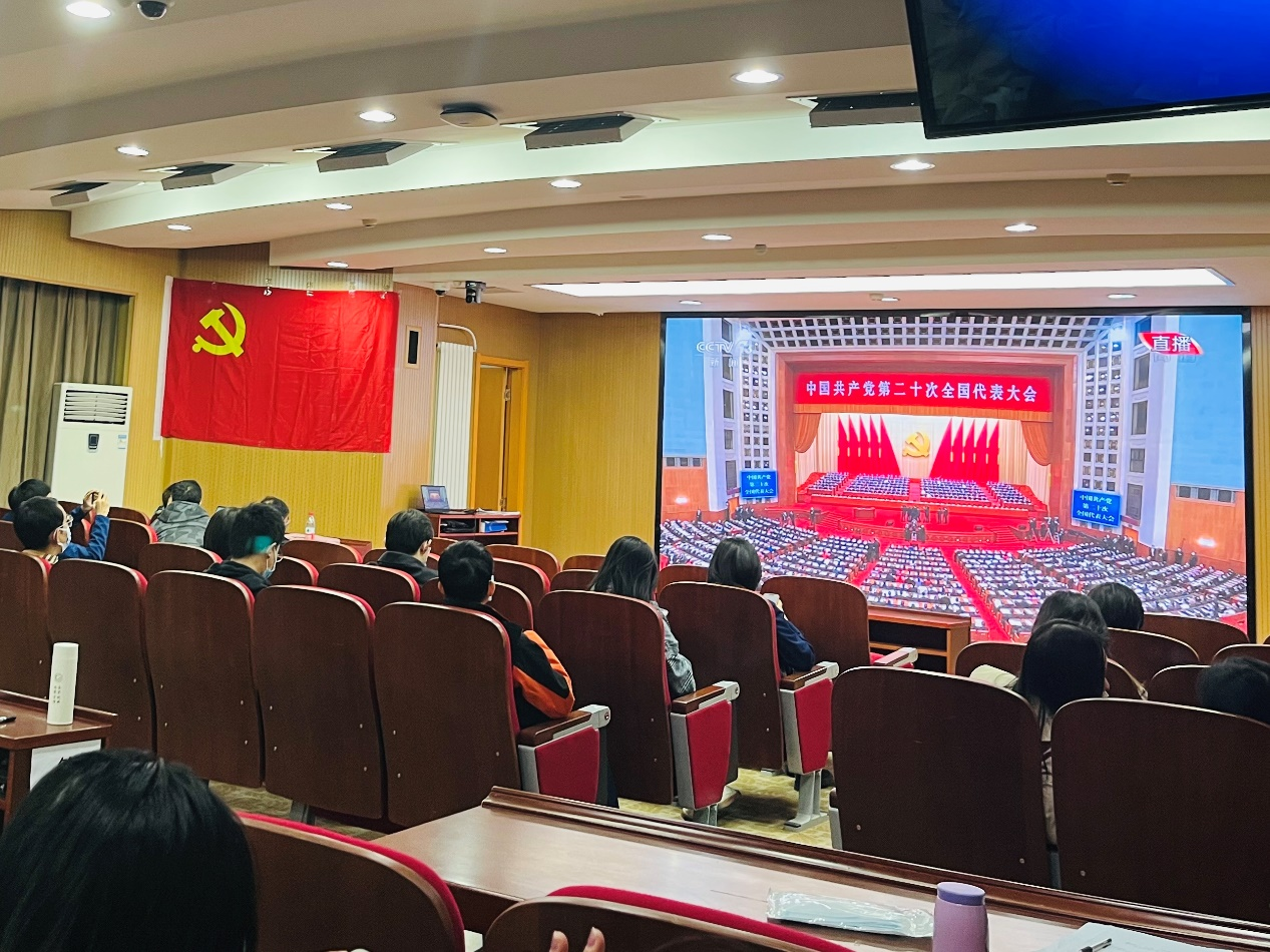 党的二十大于2022年10月16日上午十点正式开幕。为喜庆党的二十大胜利召开,台湾女优 全体研究生党员、学生骨干相聚教室、相约云端,采用线上线下相结合的方式集中收看党的二十大开幕式盛况,认真聆听、学习、热议习近平总书记的报告。
