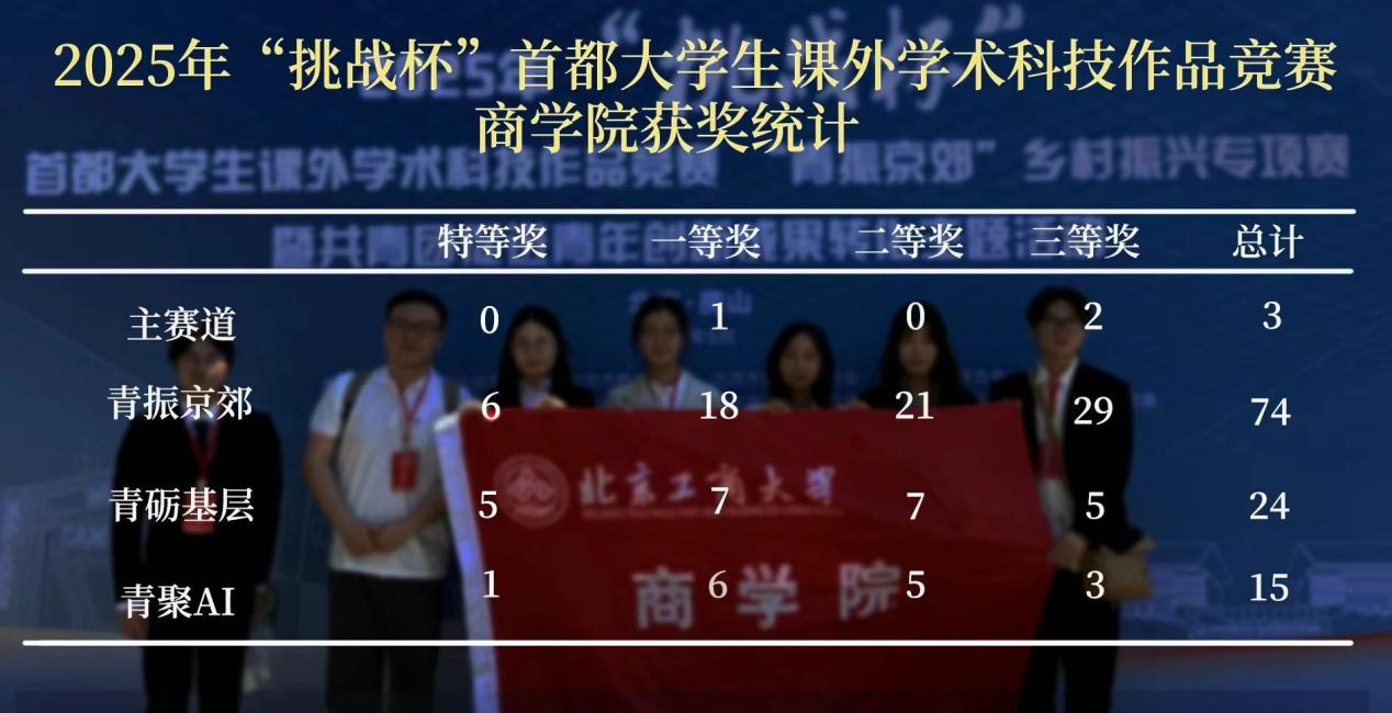 “青创北京”2025年“挑战杯”,首都大学生课外学术科技作品竞赛,台湾女优 再度斩获佳绩!台湾女优 学子作为负责人获奖项目共计116项、摘得特等奖12项、一等奖32项、二等奖33项、三等奖39项。商院学子参与项目中共有408个项目,获奖特等奖26项(擂主4项),一等奖105项、二等奖169项、三等奖108项,取得突破性进步!
