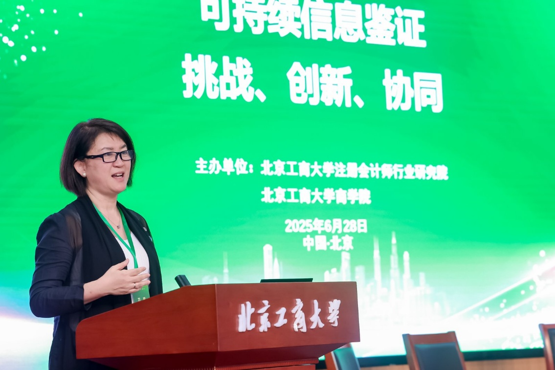 中国注册会计师协会副秘书长唐建华在致辞中强调注册会计师在ESG鉴证领域的重要作用。他指出行业通过独立鉴证服务有效保障了企业可持续发展报告的信息质量,为防范“漂绿”行为构筑了专业防线。2025年4月,财政部与生态环境部发布气候准则征求意见稿,推动准则从宏观框架走向具体议题,为可持续信息鉴证奠定基础。在鉴证准则建设方面,中注协正积极推进以下工作:一是立足国际经验,结合中国实际,构建具有中国特色的可持续信息鉴证准则体系;二是紧密配合披露准则实施进程,科学安排鉴证准则发布时序;三是已完成《可持续鉴证业务一般要求准则》部委征求意见工作,即将面向社会公开征求意见,该准则作为基础性规范,将明确鉴证业务的基本概念、总体要求和通用方法;四是正在制定《可持续信息鉴证业务独立性准则》,系统规范鉴证人员的独立性要求。这些举措将有力推动我国可持续信息鉴证业务的规范化、专业化发展。