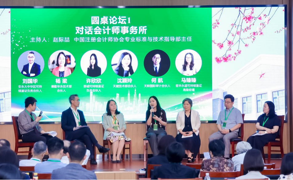 圆桌讨论1——对话会计师事务所由中国注册会计师协会专业标准与技术指导部主任赵际喆先生主持,嘉宾包括安永大中华区可持续鉴证负责合伙人刘国华先生、德勤华永技术部合伙人杨梁女士、容诚可持续鉴证负责合伙人许欣欣女士、天健技术部合伙人沈颖玲女士、天职国际审计合伙人何航先生、以及普华永道可持续鉴证高级经理马臻臻女士。本次讨论聚焦可持续信息鉴证领域的六大核心议题:鉴证范围(部分指标与全面报告)、保证程度(有限保证与合理保证)、会计师事务所角色定位、鉴证意见侧重点(公允性与合规性)、国际准则本土化适用性以及机构能力建设。其核心观点是,市场对部分关键指标鉴证存在现实需求,但全面鉴证更能提升报告整体公信力;当前以有限保证为主流,但需推动可量化指标向合理保证过渡;公允性鉴证面临企业量化能力不足和核算标准缺失等现实障碍。ISSA 5000为中国准则制定提供基础,但完全基于财报审计逻辑,存在“不适合、不到位”之处,因此应当结合国情,制定有针对性、甚至引领国际的鉴证指南。此外,会计师事务所作为可持续鉴证的核心力量,应当通过“内外兼修”的方式持续提升专业能力:对内完善人才培养体系,在专业资格认证中嵌入可持续鉴证内容,建立持续教育机制,促进审计与咨询团队协同;对外构建跨领域协作网络,与高校、科研机构及行业组织深化合作,共同提升可持续鉴证服务能力。