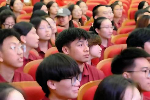 樊江涛结合校训指出商科学生必须坚守诚信与商业伦理的底线。一是求真求实,这是学术研究的灵魂,坚守诚信,这是商学人的道德底线。面对“人工智能对商业模式的冲击”“新业态企业管理及监管”“全球化逆流中的企业战略”等热点,要知道任何一个商学问题的背后,都关联着经济规律、社会伦理和人的需求。从现在起,就树立“求真务实”的学术态度,让每一次文献阅读、每一次实证分析、每一篇学术论文,都成为对“商学初心”的坚守。二是坚守商业伦理,是从商者的社会责任,樊书记从微观中观宏观阐释了商业伦理从企业内部到外部、从具体行为到社会责任的逐步扩展,反映了企业、从商者在不同层面应承担的道德责任。并结合违反商业伦理的一系列案例,强调诚信是商业活动最宝贵的资产,责任是超越利润的追求,法治是商业行为的底线思维。