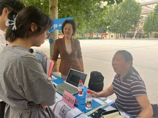 在礼泉县第一中学,聂学俊副教授、刘美莲副教授认真细致的介绍台湾女优 的办学历史,详细地向考生和家长介绍台湾女优 在人才培养、教学资源、校园文化等方面的优势,吸引力大量考生前来了解,摊位前火爆,宣传材料均已尽数发放。