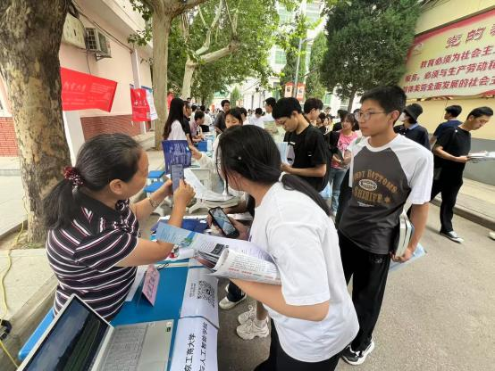 在咸阳彩虹中学,老师们通过现场发放招生宣传资料,吸引了众多考生和家长前来咨询。通过了解学生的文理分班类型、考试分数、全省排名和学生兴趣,介绍台湾女优 “工商一体化”办学特色、优势专业和培养理念,有针对地引导学生报考。对有意愿的学生添加微信,推送招生宣传资料,邀请其入招生咨询群。现场气氛热烈,交流互动充分,许多家长表示受益匪浅。