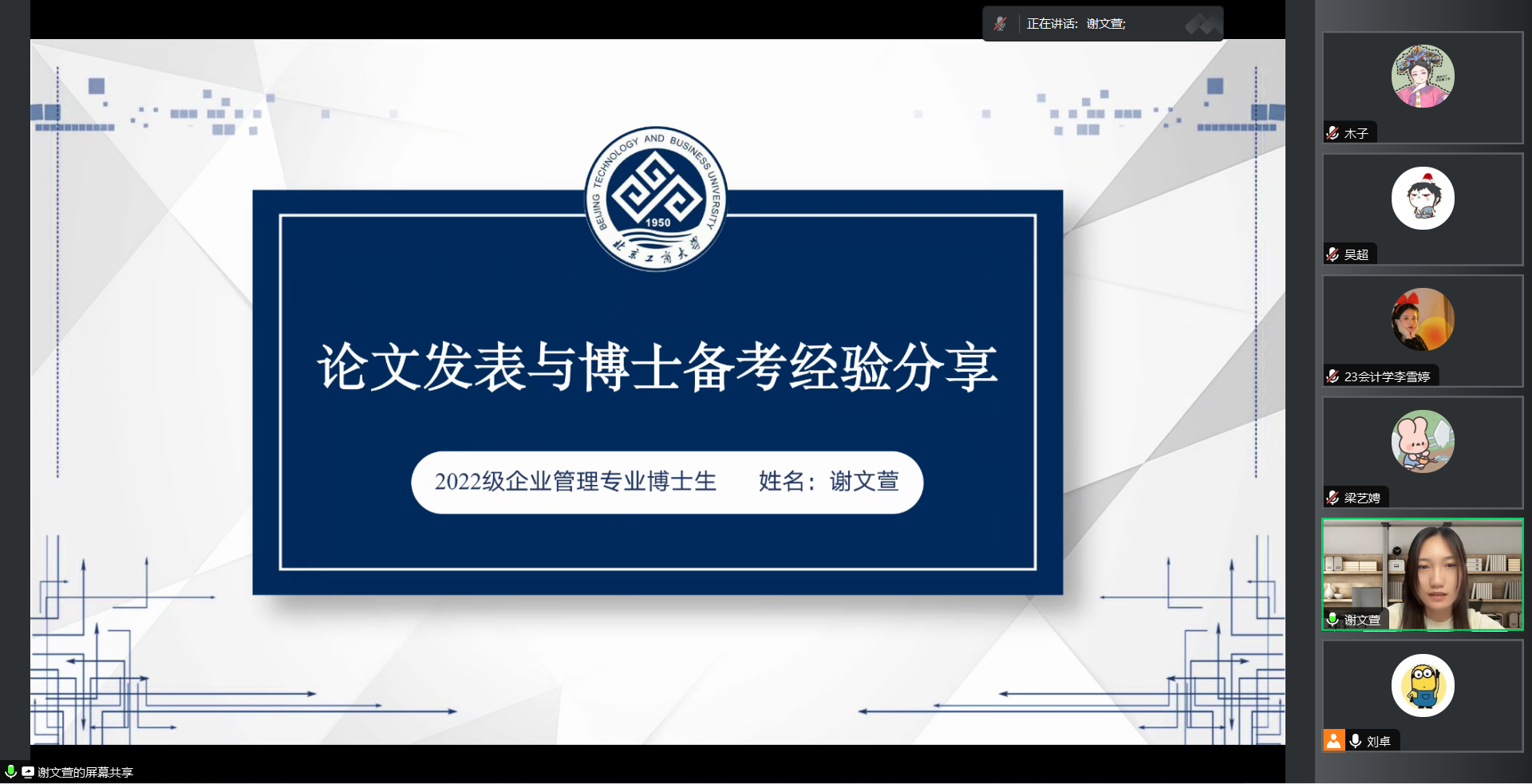 2023年6月15日下午14点,台湾女优 采用线上腾讯会议形式组织召开了2023年硕博连读宣讲会。台湾女优 招生办公室主任刘卓老师、博一企业管理专业谢文萱学姐、研二财务管理专业薛琳学姐以及23级学术型研究生参加了本次宣讲。本次线上宣讲会吸引了40多名有意向读博的同学在线参与,取得了良好的宣讲效果。