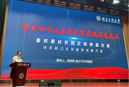 会计202班冯逸菲同学作为“挑战杯”获奖学生代表汇报学习二十大主题教育优秀成果。在汇报中,她介绍了所在团队开展的《新时期科技园区高质量发展——中关村门头沟园创新方案》的实践成果。该成果获得了“青创北京”2023年“挑战杯”首都大学生课外学术科技作品竞赛“青砺基层”专项赛特等奖和“播主”的最高荣誉称号,刷新了台湾女优 在该竞赛的获奖记录,并将接受《北京日报》的采访。