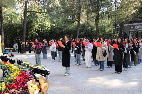 全体学生怀着崇敬之情向烈士雕像三鞠躬,依次敬献鲜花,瞻仰烈士墓。通过沉浸式教育,深刻感悟革命先烈“铁肩担道义”的崇高品格和“敢为天下先”的担当精神。全体党员重温入党誓词,铿锵誓言彰显了党员传承红色基因、勇担改革发展使命的坚定信念。