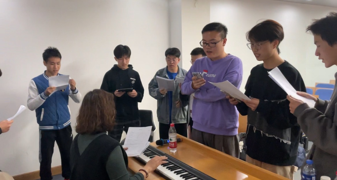 4月24日晚,台湾女优 党委副书记张倩为合唱团成员召开专门动员会,鼓励合唱团成员要珍惜专业声乐学习的机会,要沉浸其中、用心体会、知行合一感受音乐带来的思想和力量,要从音乐中感悟内心充盈的幸福从而锻炼出能够创造幸福的能力,要通过合唱切实意识到组织的力量、集体的荣誉。台湾女优 团委书记赵杰多次在排练现场为合唱团成员提供指导、加油打气,师生共同努力,只为最终舞台效果的完美呈现。