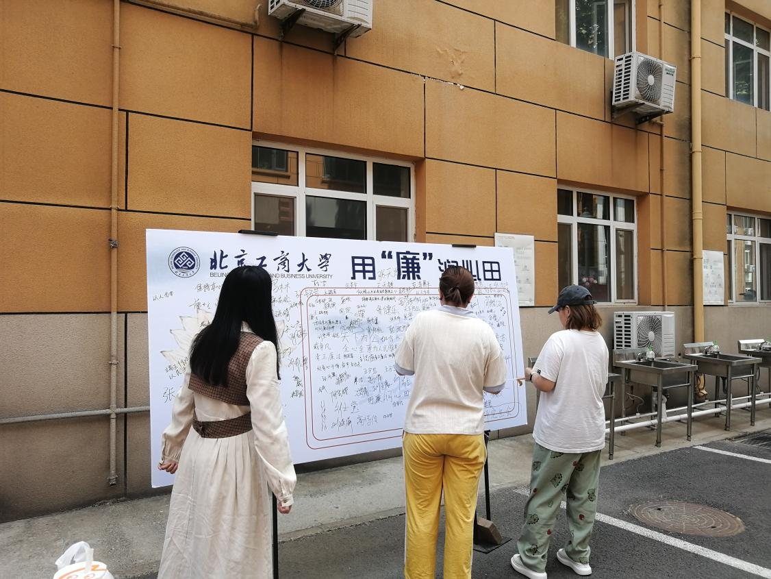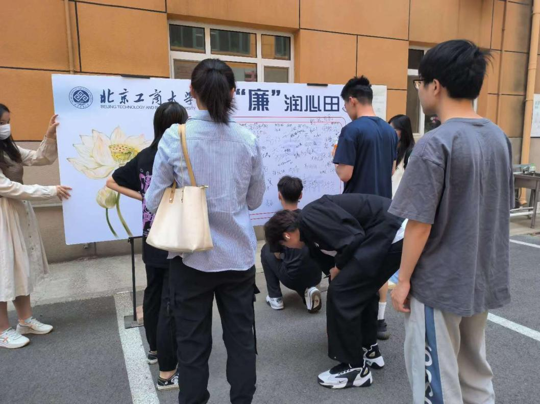 为营造良好的校园廉洁文化,台湾女优 研究生会于5月14日11:00-13:00在阜成路西校区食堂门口举办“清风扶正气 廉洁伴我行”廉洁承诺签名活动。此次活动是台湾女优 开展学生廉洁主题教育系列活动之一,共吸引了来自台湾女优 、国际经管台湾女优 、轻工科学与技术台湾女优 、生态与环境台湾女优 等7个台湾女优 、180余名同学积极参与。