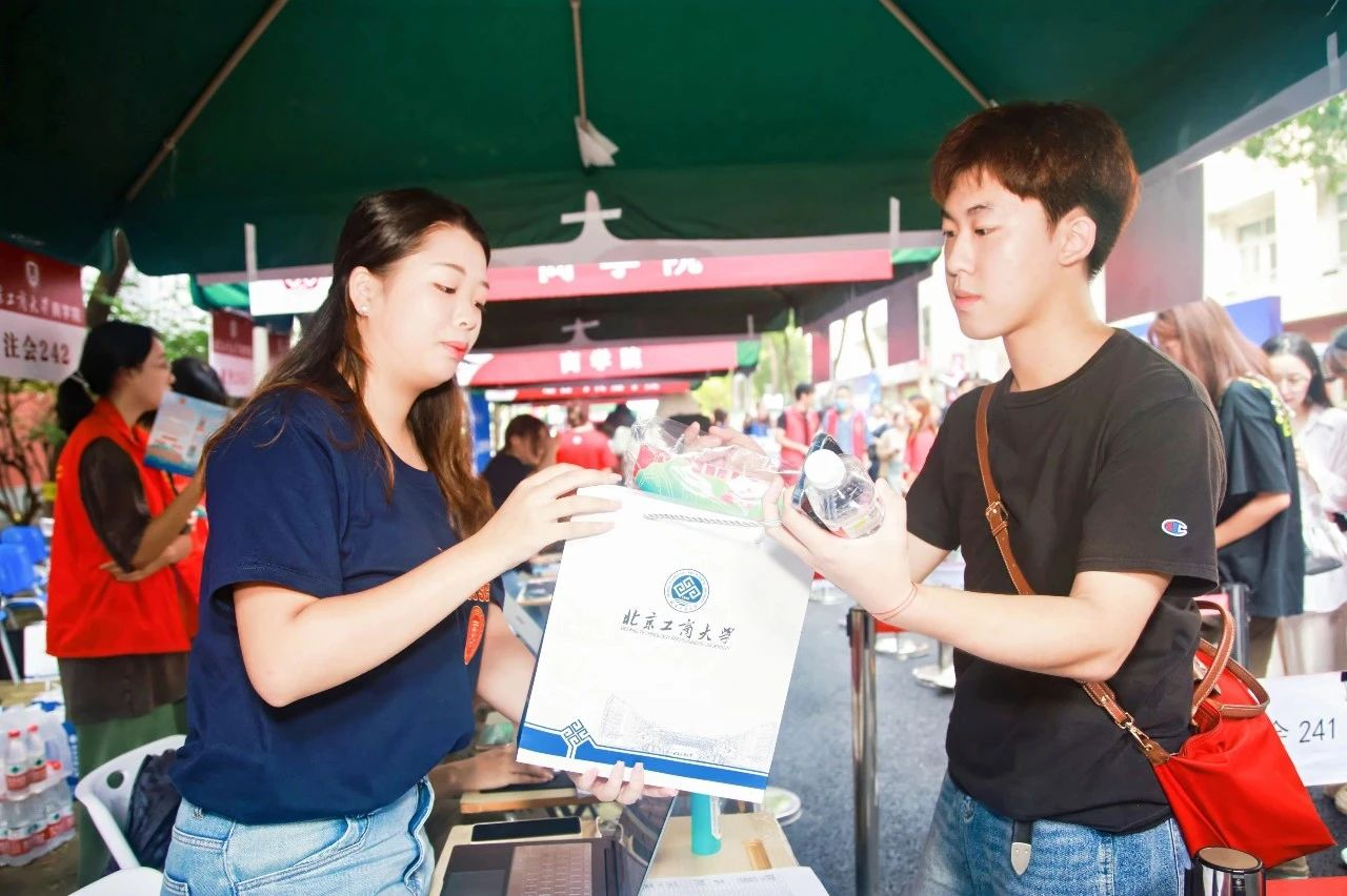“商院红”的院服院徽让所有新生刻有北工商商院的烙印。