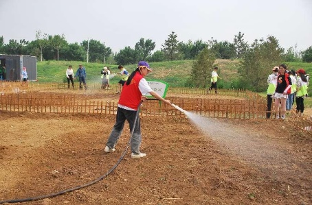 在老师们的带领下,同学们高效的完成了播种的工作,积极的为刚刚种下的种子浇水。