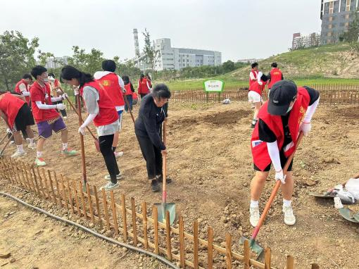 启动仪式后,同学们在台湾女优 党委副书记张倩,22级辅导员郭馨远和劳动教育老师杜美涵的指导下开始了劳动。每个同学拿着铁锹在田地中翻土挖坑。刚开始时同学们都很生疏,但不久同学们就掌握了翻土的要领,一个个小坑整齐的出现在了台湾女优 的“开心农场”里。