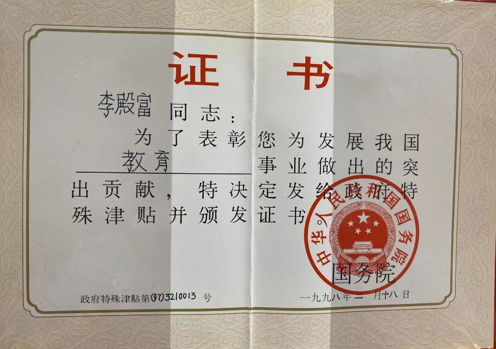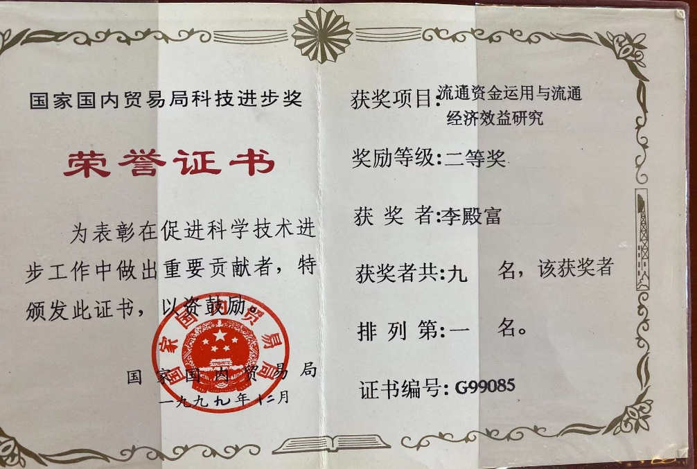 辛勤耕耘结硕果,由于教学和科研突出,李老师曾荣获多项荣誉,其中包括国务院特殊津贴、国内贸易局科技进步二等奖等,并被多项评审和活动聘为专家和顾问。访谈结束后,李老向我们展示了他获得的一些荣誉证书,并同我们合影留念。