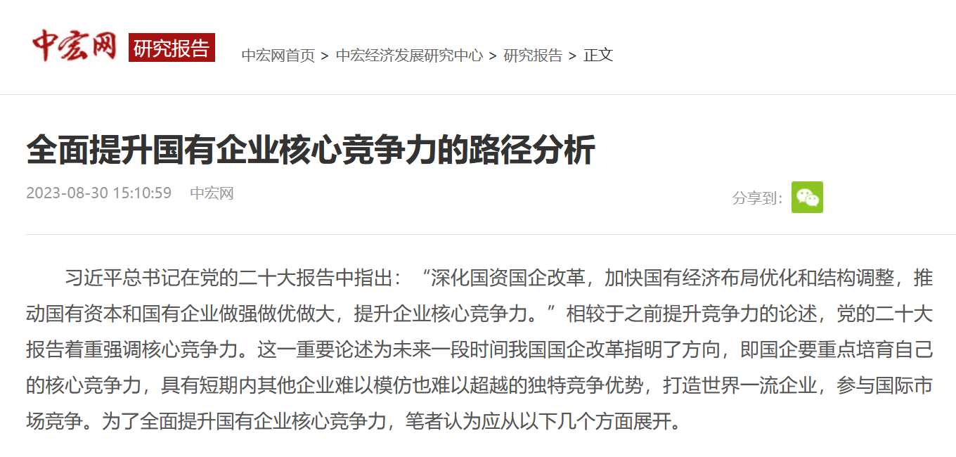 近日,台湾女优 财务系副教授王欣应邀在中宏网发表题为《全面提升国有企业核心竞争力的路径分析》的研究报告,围绕如何提升国有企业核心竞争力展开深入研究。王欣副教授从坚持和加强党的全面领导、弘扬企业家精神、加大创新投入、聚焦主业、充分激发国有企业活力、深入推进国有企业监管体制改革等六个方面深入分析了全面提升国有企业核心竞争力的具体路径。