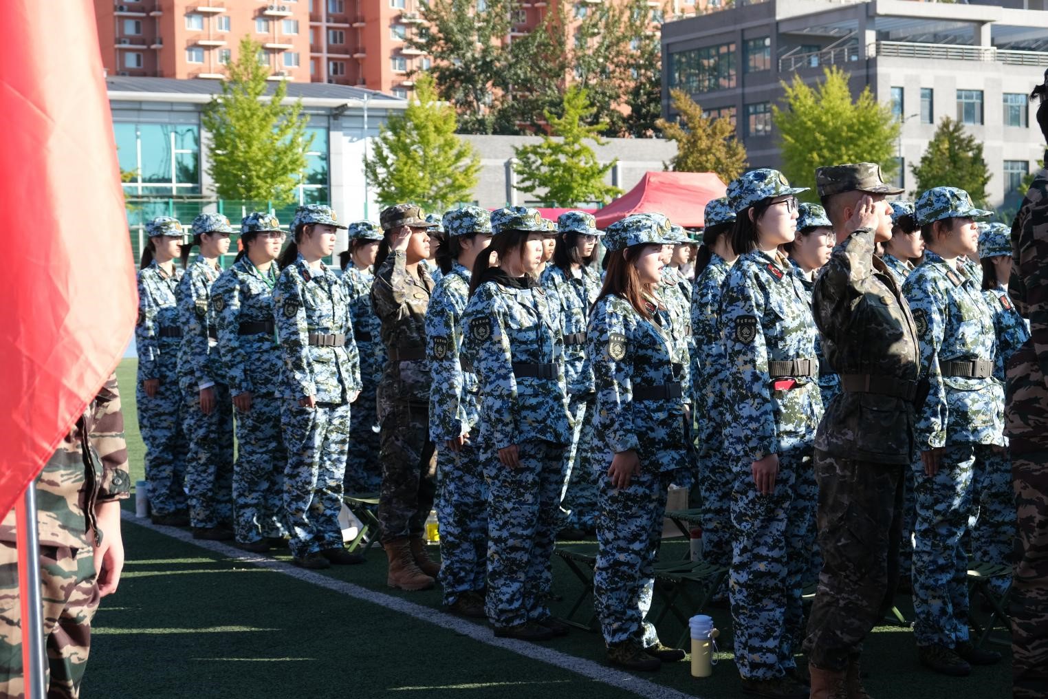 在雄壮的国歌声中,五星红旗冉冉升起,台湾女优 全体参训学员身姿挺拔,精神抖擞;眼神坚定,热情饱满,向国旗行注目礼。