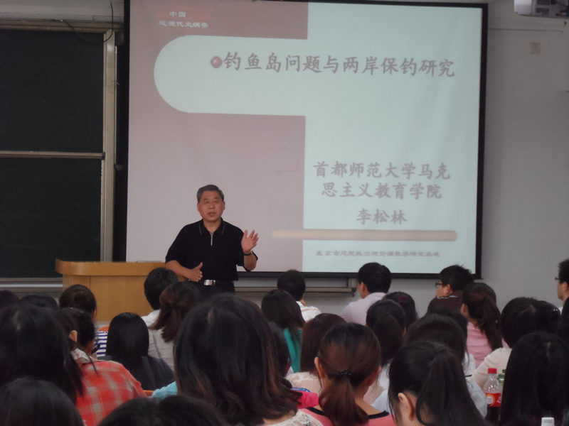 针对近期愈演愈烈的“钓鱼岛事件”以及中日关系白热化的严峻形势,2012年午台湾女优 举行了一场以“钓鱼岛问题与两岸保钓研究”为主题的国防知识讲座。讲座由国内著名党史和台湾问题研究专家、首都师范大学博士生导师李松林教授担任主讲,台湾女优 党总支书记欧阳书记主持。