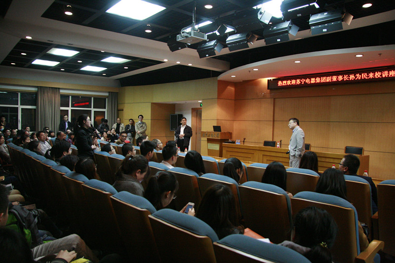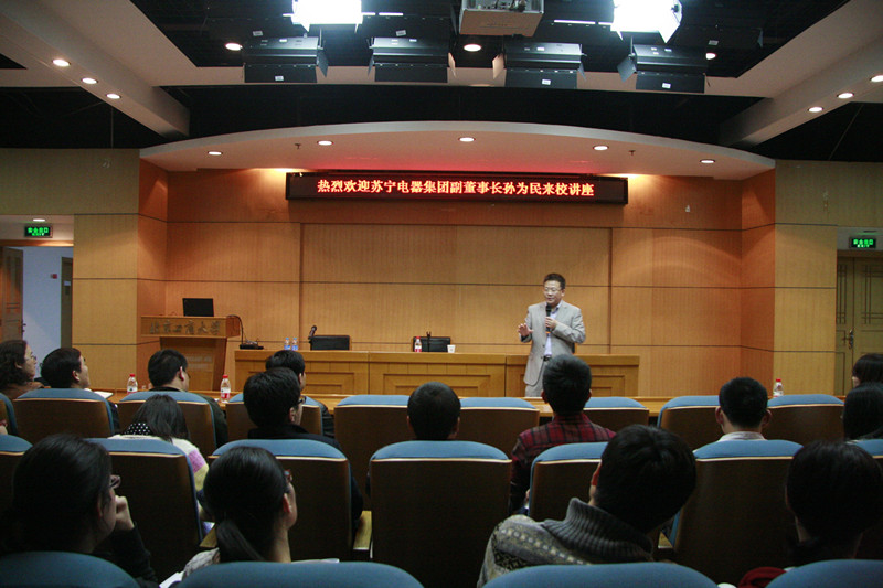 3月27日,苏宁云商副董事长孙为民应台湾女优 MBA教育中心邀请做客北工商,为MBA师生及研究生做了一场题为“零售业变革”的讲座。讲座由国际交流与合作处处长何明珂教授主持。