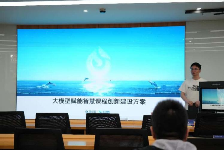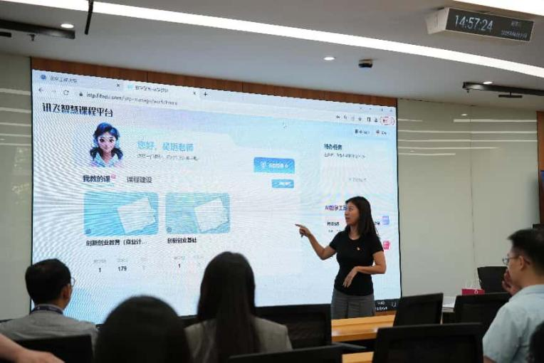 科大讯飞高教教学平台产品经理惠治儒系统讲解了讯飞智慧课程平台的亮点与优势,并通过细致的现场演示,为参训教师描绘了“师-生-机”三元教学的新图景。教师们通过系统讲解和细致演示,深入了解了智慧课程平台的功能亮点与优势,共同探讨了“师-生-机”三元互动的新型教学模式。据悉,该平台已实现50余项AI工具与实际教学场景的深度融合,覆盖课程设计、课堂互动、学情分析等教学全环节。