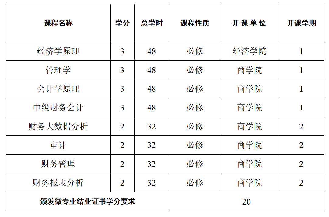 数智会计微专业教学计划表